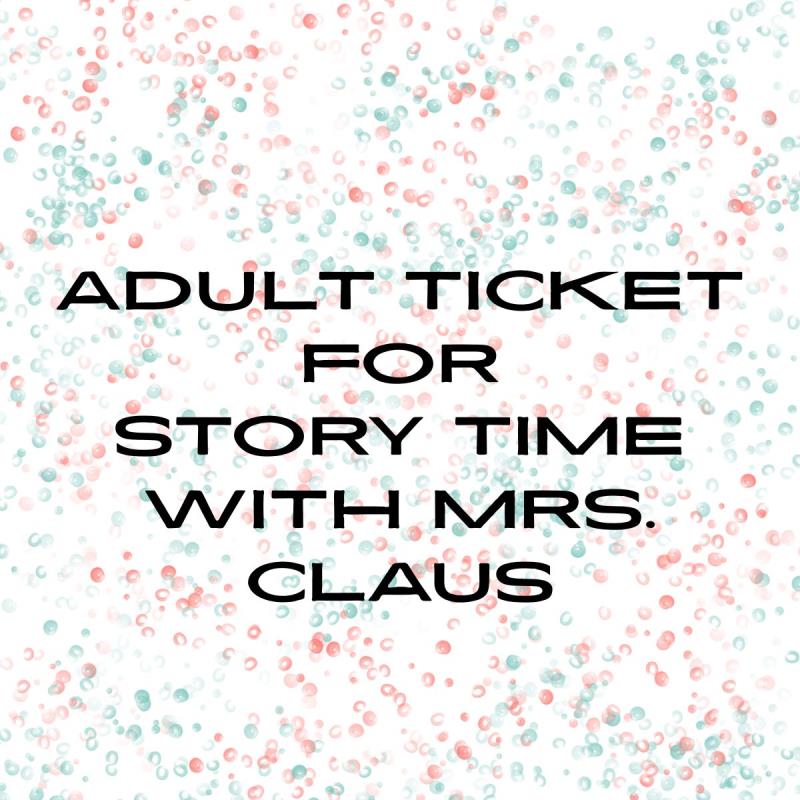 This is for adults who are accompanying a child/children to Story Time with Mrs. Claus. This ticket is only good for the date and time slot selected.